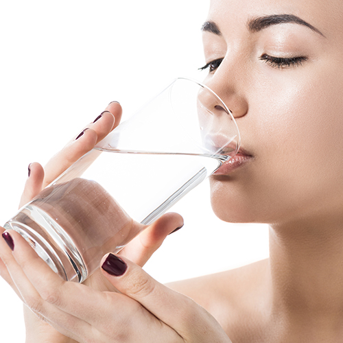 Wasser – trinke mindestens zwei bis drei Liter Flüssigkeit am Tag. Meide Alkohol und koffeinhaltige Getränke, da diese deinem Körper Flüssigkeit entziehen. Trinke stattdessen ungesüsste Tees, Aloe-Vera-Saft, Smoothies mit einem hohen Wassergehalt, Milch oder Pflanzenmilch, Kokoswasser, grünen Tee und Brühen. Suppen versorgen deinen Körper nämlich nicht nur mit wichtigen Nährstoffen und Salzen, sondern auch mit Flüssigkeit.